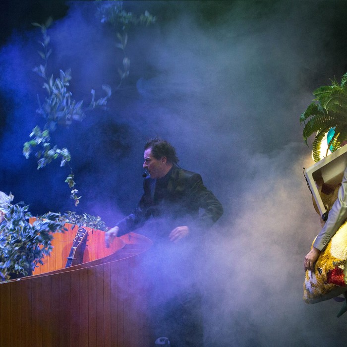 “An uncommonly original show for pre-schoolers! With De man die alles weet director Jetse Batelaan has managed to rouse his audience, ranging from the very young to grownups, and make them roar with laughter. The show kicks off with a catchy song by Keimpe de Jong: ‘Here’s the man who knows it all, he’s unforgettable’. Until the arrogant man-who-knows-it-all starts to make mistakes, and his young viewers are compelled to call out suggestions to help him, creating a sense of chaos and anarchy that is rarely evoked or allowed in theatres. An accomplished entertainer, René van ’t Hof keeps his fired-up audience on a string; sometimes thanking a child, sometimes responding with vexation. His helpful side-kick, performed with great humour and timing by Tjebbe Roelofs, brings some wonderfully wacky creations and asides. Together they form an irresistibly funny Batelaan-duo, with disorderly help from the mood-boosting multi-musician De Jong” VSCD-jury.