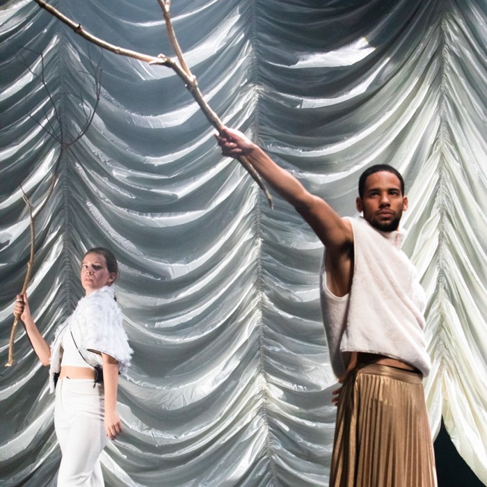 What was and what now is a visual, physical children’s production about the origin of everything. With one big bang, Anna Bentivegna, Zoë Demoustier and Ayrton Fraenk create a world between somewhere and nowhere. They investigate light and dark, old and new, chaos and order, and the transient and infinite. Through the prisms of science and myth, they seek out the beginning and the end. Be amazed by the mystery that surrounds us.