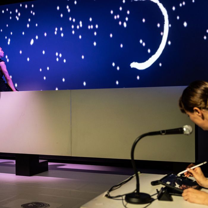 Pas tegen het einde van de voorstelling had ik in de gaten dat Anne Fé de geluidseffecten deed, en animaties tekende op een I-pad. Zo blijft het boeien, alle 45 minuten lang.