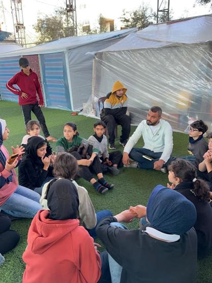 "We, companies, theaters, and artists from across the breadth of Dutch performing arts, admire the courage of the theater makers at Theatre Day Productions who, while risking their own lives, continue to work in Palestine. They sit in a circle and let the children and young people speak. Or play when words fail. In this way, they create a space where sorrow, loss, and fear are shared. A place where sometimes laughter is heard, and everyone supports each other. Where children can relax and remember what it is like to be a child. Even if only for a moment... This action focuses on providing immediate aid to enable Palestinian artists to continue their healing work and to continue giving workshops. And if the war stops, our help and solidarity will also be invaluable in the reconstruction.