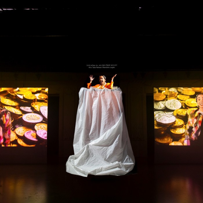 Ngaba depicts the Cullinan's journey home to South Africa. With a personification of the diamond, flickering images from the future and monologues from a court, she takes you from the early 19th century to today's South Africa. Thus, she follows the sharp edges of history with a naïve view of today. In doing so, the charismatic actress uses reality but also fake news. Thus, she takes the audience into an alternative history and future. In the process, she seeks the answer to the question: by returning this diamond, can the UK heal all the scars of the past?