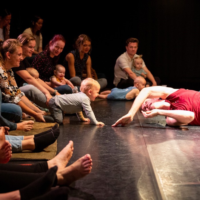 After the performance, the artists invite the little ones to discover the playing field together. They can crawl in, out, along and through the decor to explore the special materials up close.