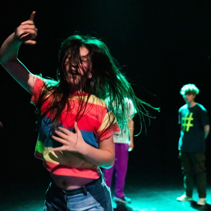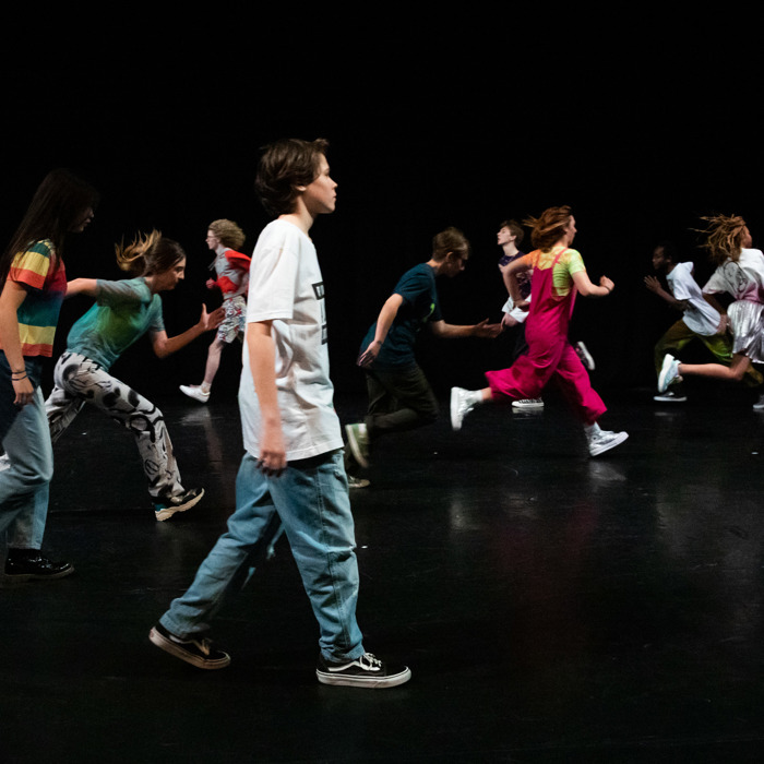 followfollow is a dance production about following and followers. About inspiring, copying and imitating. About fashion appearing, disappearing and returning. About following the lead and going a different way. About selfies and the latest TikTok challenges. About giving thumbs up and hearts. About groups and peer pressure. About chasing your heart and trying to be yourself in a world packed with contradictions. About looking for identity.