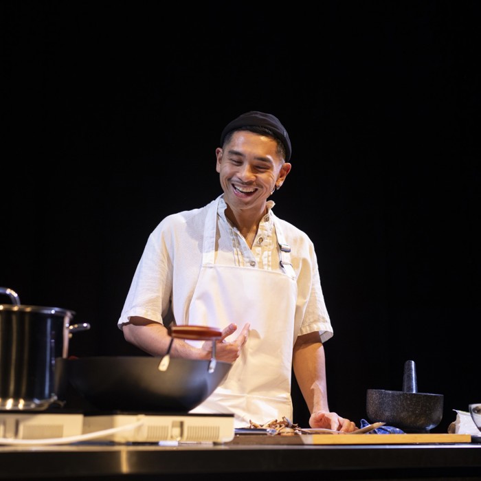 With Pap (9+), dancer, choreographer, and creator Art Wutthinan Srisayam sets up his stove on stage and explores what was instilled in him from a young age. By stirring, smelling, and grinding fresh herbs with a mortar, Art hopes that this solo performance will bring him closer to his late father. Who was he, and what of him remains? For this project, Art traveled to Thailand to meet his father’s family again after more than twenty years. There, he regained an important memory: how his father taught him to cook.