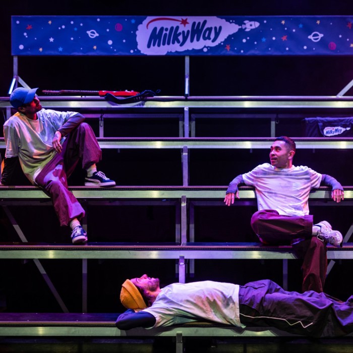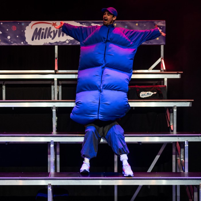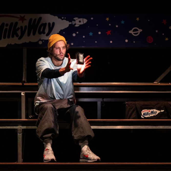 Milky Way is an imaginative, physical theater performance that explores feeling lonely at times, but being together in that loneliness. It's a performance about drifting between being a child and being an adult, and about setting your questions in motion. Above all, it's about having the confidence that there is always someone there for you when the questions in your head threaten to overflow.