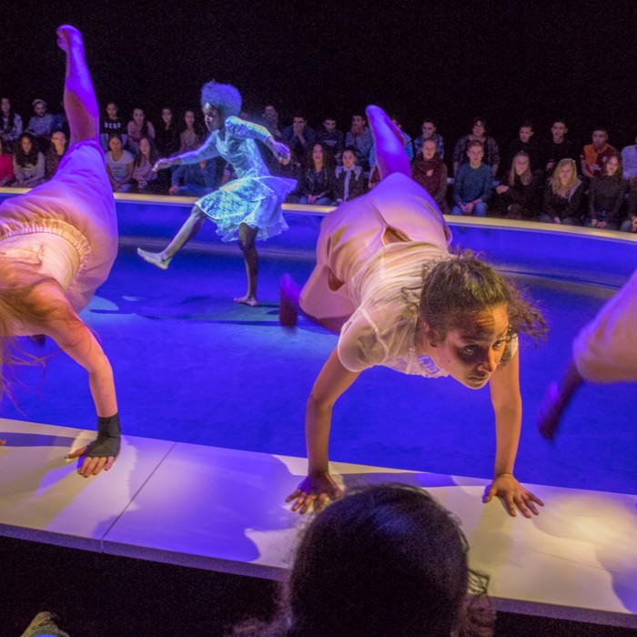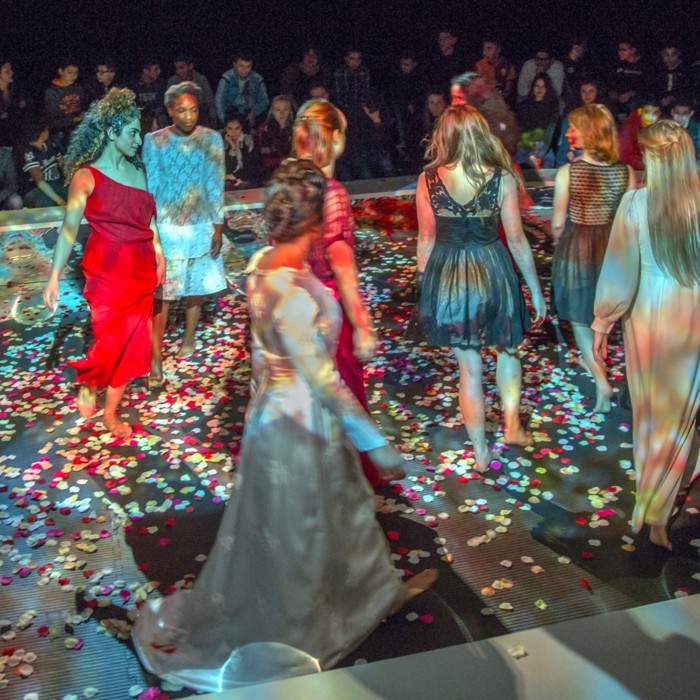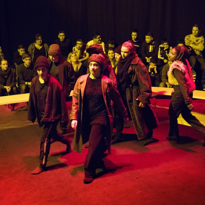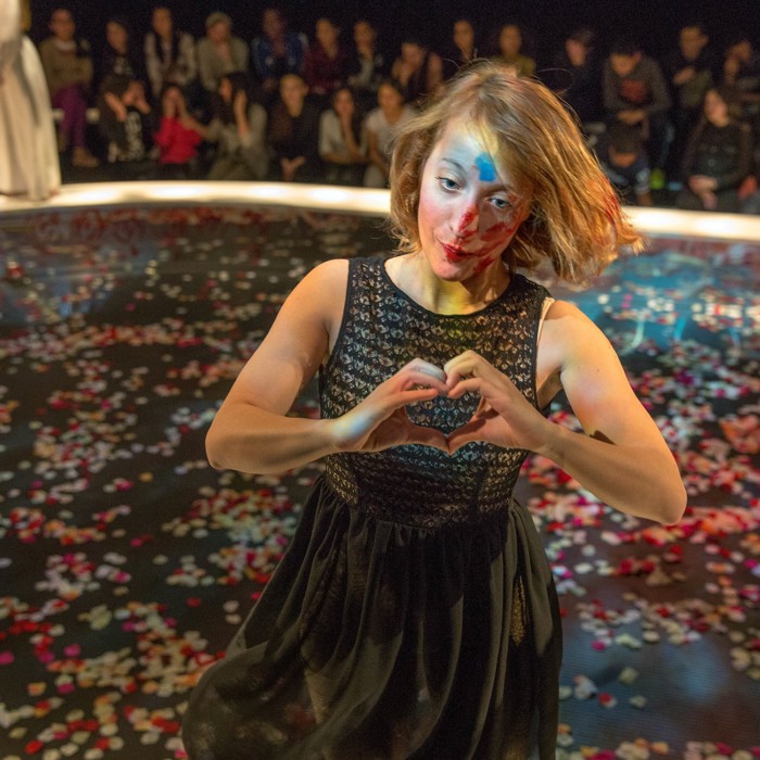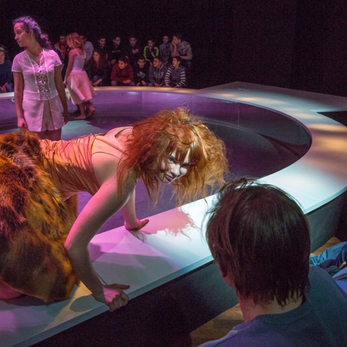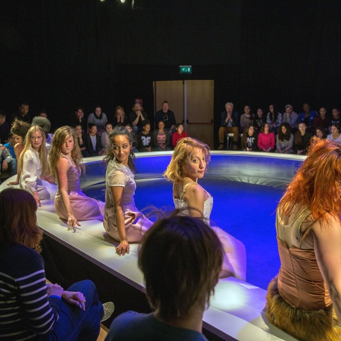 Rite of Spring is about peer pressure, hormones and the fear of beauty. A modern coming of age story mixed with prehistoric pagan spring rituals. The threat of natural forces, the struggle with oneself and the desire to break free turn these young women into charming monsters. Close to the heart theater, figuratively and literally, because the audience sits around the performance area.
