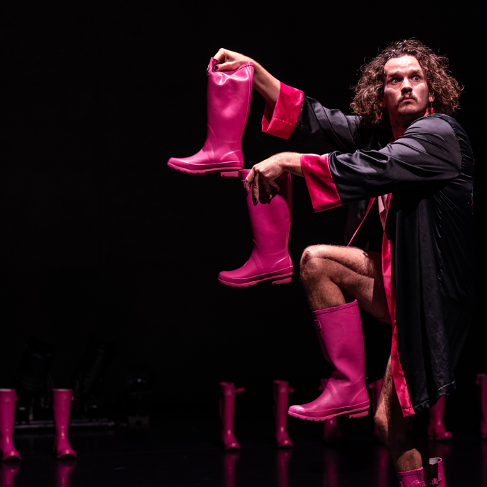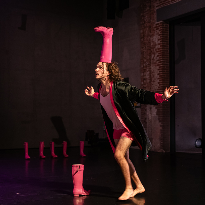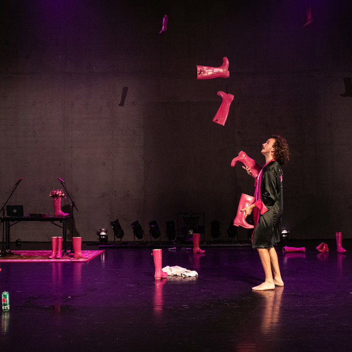 A Circus Comedy show in English suitanle for a 16+ audience, featuring absurd characters, bizarre juggling, and a stupid amount of Pink Boots. Pink Boots and An Alcoholic Sock Puppet is the first full length piece of Harvey. Cobb (Winner of BNG Bank Circusprijs). A Circus, Comedy show featuring Harvey’s signature blend of silly comedy, heartfelt sincerity and an abundance of Pink Boots. It will have you laughing, crying, and questioning whether everything is going terribly wrong or exactly to plan?