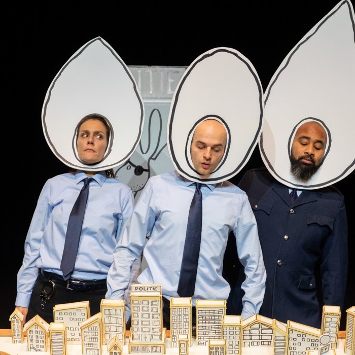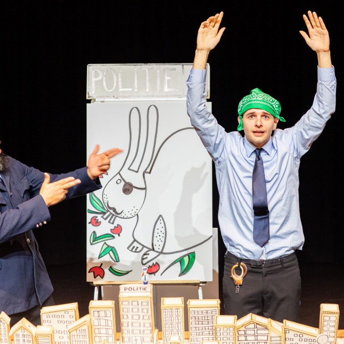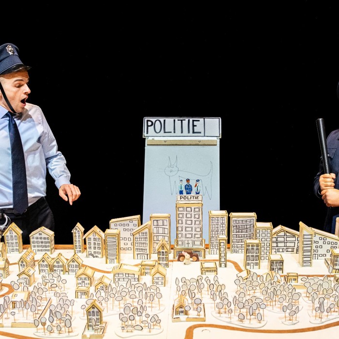 “When they asked me to make something for 3+ I thought ‘How can I get toddlers to sit still?’ When I was that age I was crazy about policemen. So I figured it should be CSI Miami for 3 year olds. I also wanted to play around with scale, the physical size of things, so that the target group could for once get the feeling that they were big instead of small. That’s where the idea of the miniature stage set comes from.”