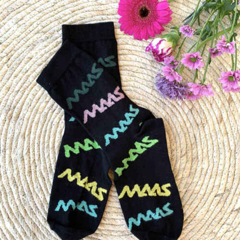 Rock your socks! Complete your outfit with these cozy Maas socks. Available is size 36-40 and size 41-46. The socks cost €10,- per pair (excl. shipping costs).