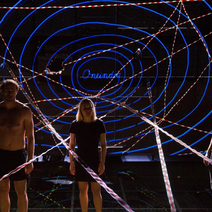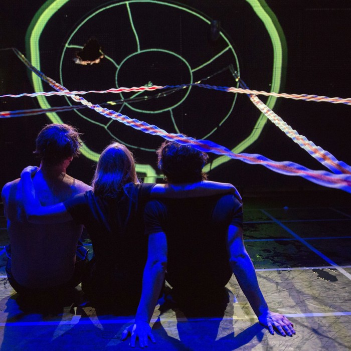 Sterke animaties van Wouter van Reek (...) Zijn bewegende tekeningen laten punten met elkaar stoeien, verbeelden spetterende gevechten (…) speelse, mooi vormgegeven voorstelling.