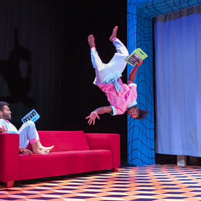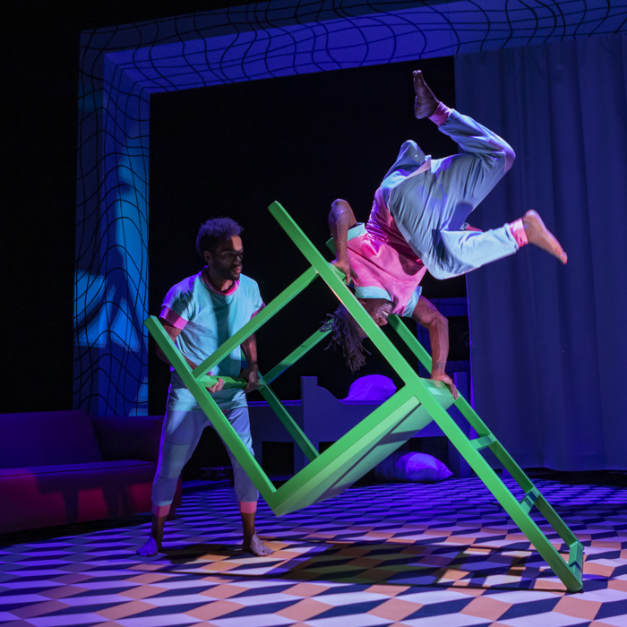 Indrukwekkend is hun lichaamsbeheersing als zij ‘dansen’ met een veel te grote groene stoel, geweldig is hoe zij synchroon bewegen of elkaar juist spiegelen.