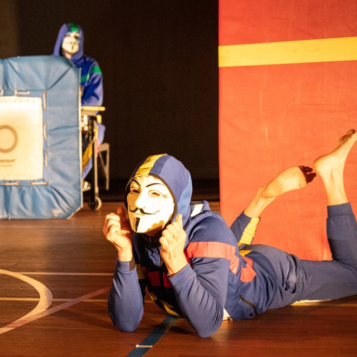 Blinde Vlek is een muzikale en acrobatische poging om mensen kritisch te laten kijken naar de gevolgen van de moderne technologie.