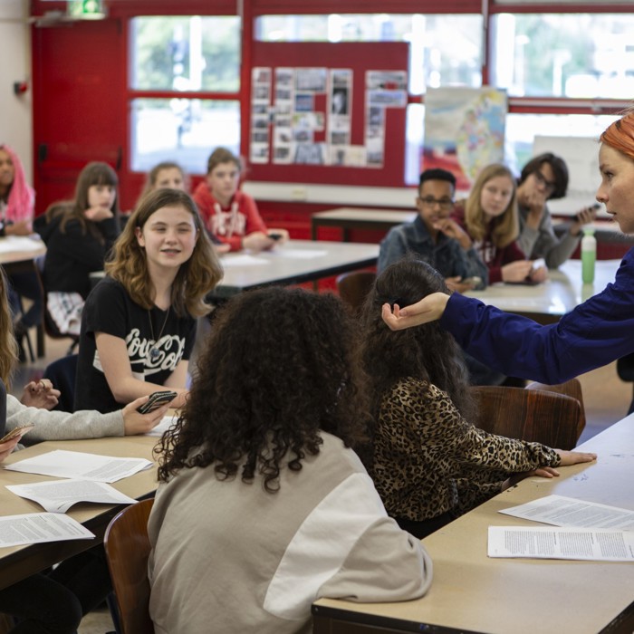 Bij de voorstelling in de klas hoort een actieve theaterworkshop. We spelen en spreken over privacy en onze digitale identiteit. Wat laat je wel aan je vrienden zien en wat niet? Wie ben jij online en waar ligt jouw privacy-grens? Aan de hand van de telefoons van de leerlingen eindigen we met zelfgemaakte scènes die een inkijkje geven in onze digitale identiteit. Een workshop over verschillen en overeenkomsten tussen ‘digital and real’ en een duik in de wereld van privacy.