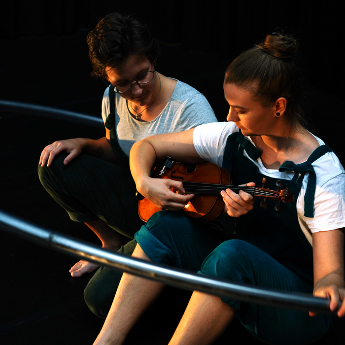 Met Kaleiding van Lily Schlinker & Janick Kremer duik je in een nieuwe vertraagde dimensie waar twee/vier lichamen in elkaar smelten en weer uit elkaar vallen. In deze voorstelling kun je voor het eerst partneracrobatie vanuit verschillende perspectieven bewonderen.