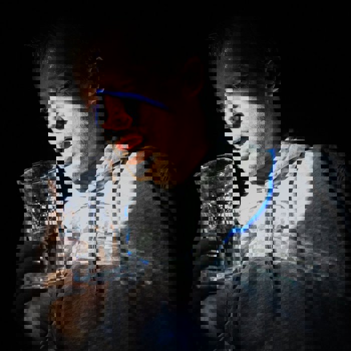 Refraction [breaking light] is een duet van Liam McCall en Oscar Starink. De twee onderzoeken wat het betekent om een Breaker te zijn en maken gebruik van licht om hun ideeën daarover te delen. Is het je wel eens opgevallen dat het lijkt alsof voorwerpen van plek veranderen wanneer je ze door een glas water bekijkt? Dat verschijnsel heet refractie: een lichtgolf breekt tegen een oppervlakte, verandert van snelheid en zorgt zo voor een vertekend beeld van wat zich onder die oppervlakte afspeelt. Wat gaat er schuil onder het oppervlak van een BBoy?