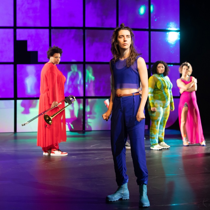Ook de verhalen zijn muziek, want de teksten zijn we eigenlijk in muziek gaan omzetten en dat spelen de muzikanten ook vaak. Je voelt bij de bewegingen, als die muziek er dan onder zit, dat dat een extra soort vertelkracht krijgt. De trombone volgt zelfs bepaalde emoties in je woorden, als je hoog of laag gaat praten en dat ondersteunt heel erg de beweging. Naar het einde toe krijgt dat een gigantische emotionaliteit. In het begin dachten we nog hoe gaan we dat in ooit samenkrijgen, maar dat is echt aan het lukken. Want verhaal wordt letterlijk muziek, waardoor eigenlijk puur de choreografie overblijft. Daar ben ik ook naartoe aan het werken - de pure beweging - de verlossing. Los van de gedachten, gewoon zijn. Plaats innemen. Lekker bewegen, in je lijf zitten.