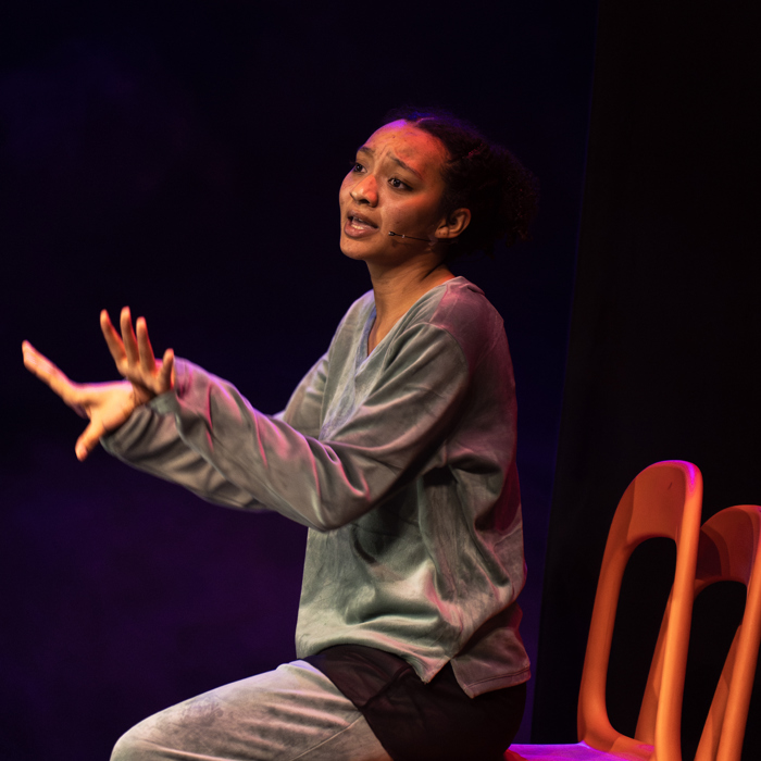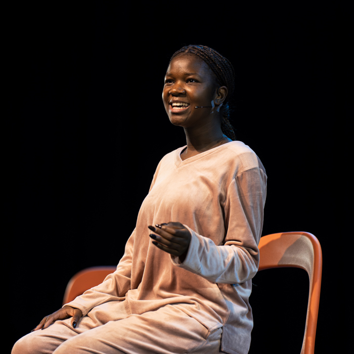 Nelgina Khensani: ‘Ik vind het belangrijk als geadopteerde om een tool te geven aan de cultuur van interculturele adoptie. Om het gesprek te openen over de onzekerheid, plezier, verdriet, woede, waardering en gemis dat allemaal komt kijken bij adoptie tussen geadopteerde en adoptieouder. Het stuk geeft inzage in wat het allemaal met zich meebrengt. Het gaat er niet over of adoptie goed of fout is, maar over ‘Wat er vaak door ons heengaat’. Deze voorstelling vertelt mijn autobiografische verhaal op een theatrale wijze. Daarbij wil ik algemene obstakels aan het licht brengen en mensen met elkaar verbinden als het gaat over adoptie, en ruimte creëren om het gesprek te kunnen openen tussen adoptiekind en adoptieouder.