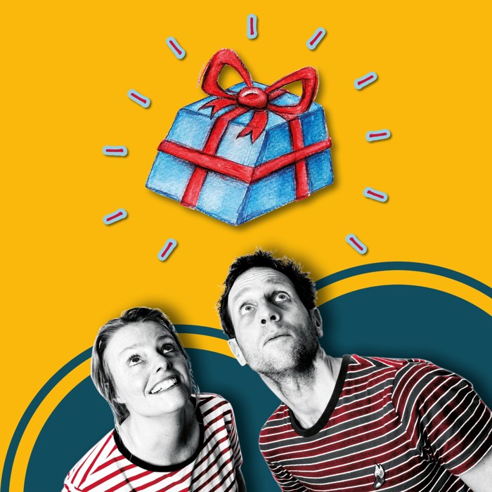 We zien een hal. Met een lift, een trap, een klok, met deuren en heel veel brievenbussen. We zien Estel en Vladi, zus en broer. Ze wachten op een kado. Het KADO. Het zou hier bezorgd moeten worden, dus wachten ze ook hier. Of in ieder geval omstebeurt, want anders missen ze het. Wat het kado is, weten ze niet, maar ze weten ZEKER dat ze het willen hebben. Dus ze wachten… Maar hoe doe je dat nou, wachten? En kan het niet wat sneller? Terwijl er keihard gewacht wordt, neemt de fantasie je flink op sleeptouw en begint de verrassende reis die je niet kón verwachten…