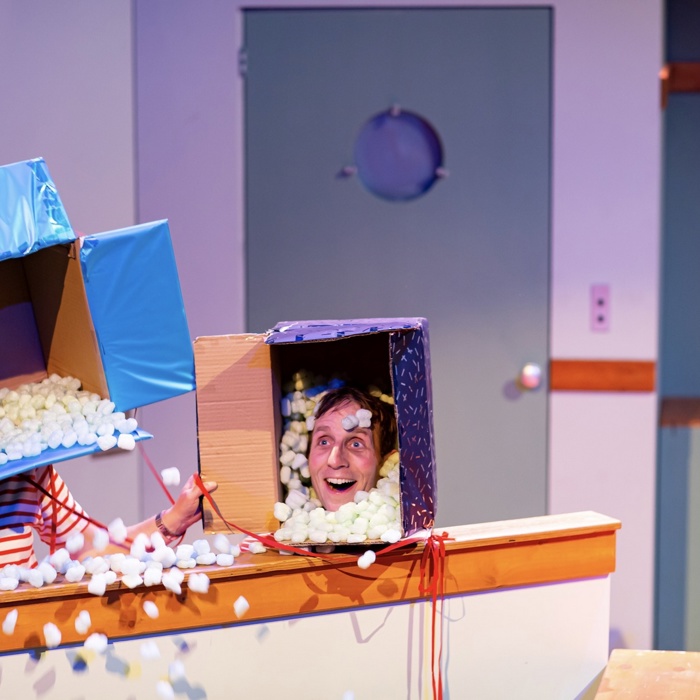 Het Kado (6+) is een spannende toneeltrip met fysiek spel in een inventief decor. Er wordt gespeeld met verwachtingen en getoverd met de tijd in deze ode aan het wachten. Vrij geïnspireerd op de klassieker Wachten op Godot (1952) van Beckett en geschikt voor een ongeduldig publiek vanaf 6 jaar.