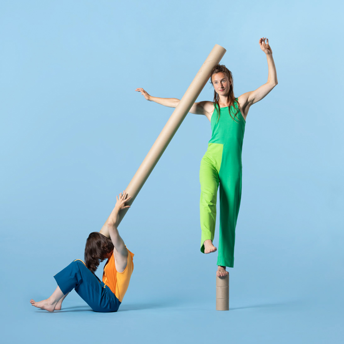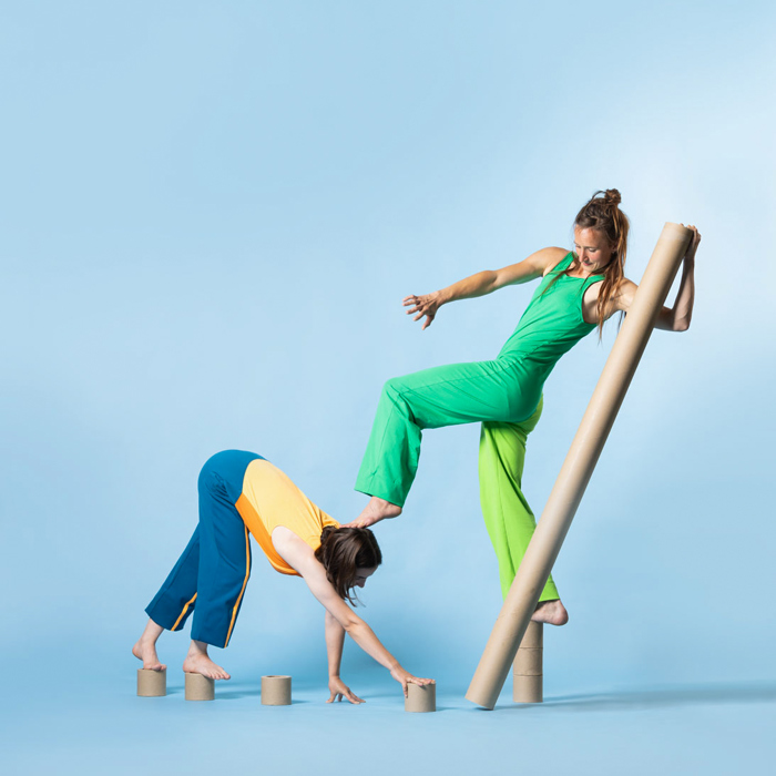In KoKERS bouwen twee dansers met kartonnen kokers hun eigen wereld. Ze ontdekken en leren hoe je samen kunt spelen. Een beeldende dansvoorstelling over plezier maken,