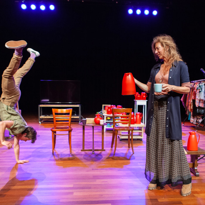 Een trans zoon en zijn moeder staan samen op de vloer in een theaterdocumentaire. Centraal staat zijn zoektocht naar gender en identiteit en haar reactie daarop als moeder. Welke impact heeft ‘worden wie je bent’ op een gezin? Met Zonder Ballen geeft een ontroerend en hilarisch eerlijk beeld.