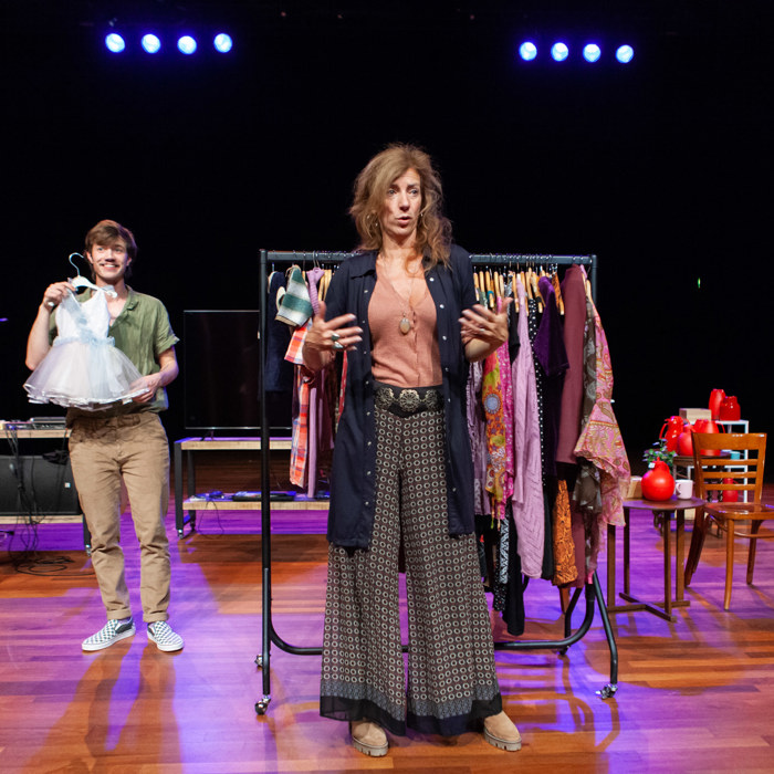 Een trans zoon en zijn moeder staan samen op de vloer in een theaterdocumentaire. Centraal staat zijn zoektocht naar gender en identiteit en haar reactie daarop als moeder. Welke impact heeft ‘worden wie je bent’ op een gezin? Met Zonder Ballen geeft een ontroerend en hilarisch eerlijk beeld.