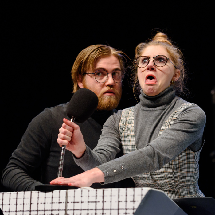 (…) vrolijke, slapstickachtige bewegingsgrappen. Elke handeling ondersteunt ze met een sterke mimiek.