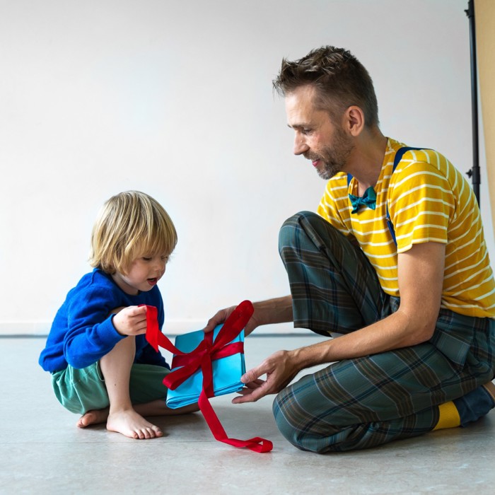 Lukas is gek op cadeautjes en dan nog het meest op het pakkepapier. Hij pakt graag in. Hij pakt graag uit. En hij geeft graag cadeautjes! Kijk, vandaag heeft hij ook een cadeau bij zich. Met een grote rode strik erbovenop. Wat zal erin zitten?