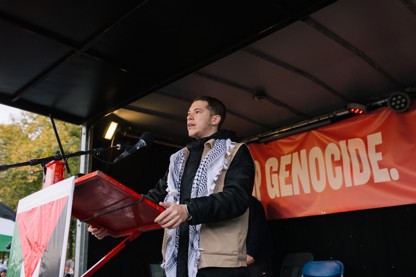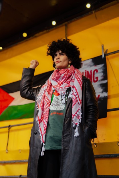 Sara Rachdan is een Palestijnse spreker, wetenschapper en activist. Tijdens de klimaatmars deelde zij het podium met Greta Thunberg om te spreken over het beëindigen van de bezetting in Palestina. Sara benadrukt dat de klimaatcrisis verbonden is met kolonialisme en dat de oplossing te vinden is in dekolonisatie.