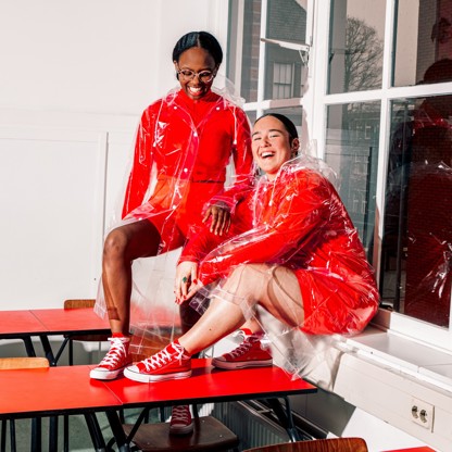 Jasmin: “Meis en ik zijn altijd heel eerlijk naar elkaar, zonder dat het zwaar wordt. Meis is wit, ik ben zwart, en ondanks alle vooroordelen en stereotypen doen we toch alles samen. Daarom vind ik het ook heel tof dat onze voorstelling de klassen in gaat: zodat we de jongeren kunnen laten zien hoe wij dat doen.”