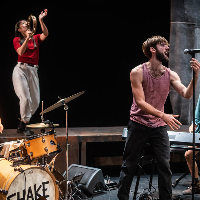 IN HET KORT: Shake Shake Shake is een energiek concert dat overgaat in een fysieke, poëtische dansvoorstelling. Muziek en beweging smelten samen tot een ritueel van loslaten en samen vinden van richting. Het is een ode aan leven, ritme en rebellie in een overprikkelde wereld.