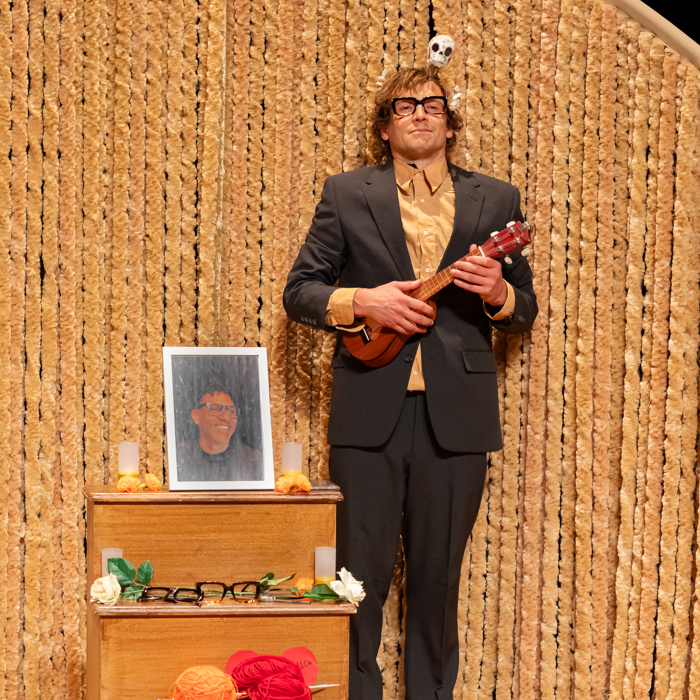Met slapstick, magie, dans en beeldend spel groeit er een herdenkingsplek vol bloemen, kaarsjes, skeletten en verhalen. Skeletje bouwt, samen met de zaal, een eigen afscheidsceremonie. Niet zwaar of plechtig, maar speels, ontroerend en vol leven. Een voorstelling voor iedereen die weleens is geraakt door verlies en wil ontdekken hoe je met slingers, dans en herinneringen ook dáár een feestje van kunt maken.