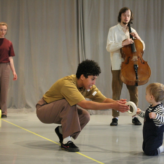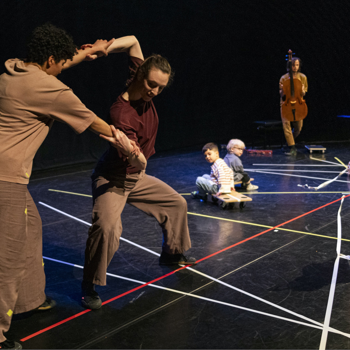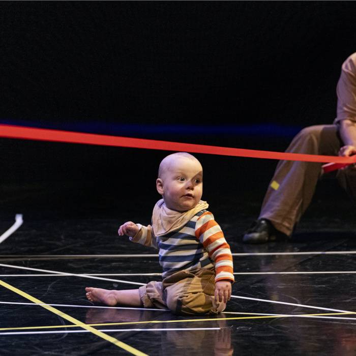 Muzikale danstheatervoorstelling die draait om beweging en ontdekken.