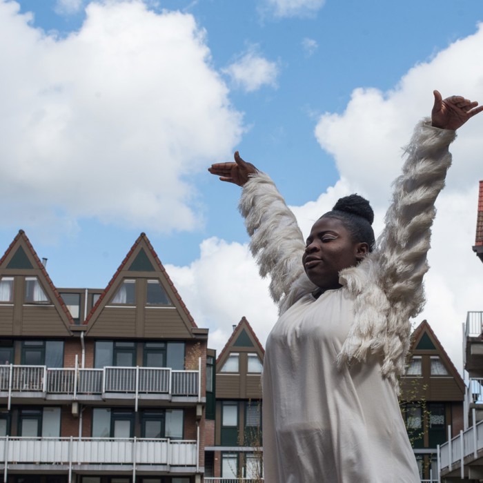 Hoe ruiken gekookte suikerbieten? Wat zie je als de bommen vallen? Hoe klinkt het zingen van de soldaten? Hoe voelt lopen naar het noorden op blote voeten? Hoe smaakt een bord gebakken aardappelschillen? Vier jonge makers van Maas maakten een voorstelling met dertig jongeren en kinderen. De bijzondere ontmoetingen met Rotterdamse vertellers vormden de basis van verschillende scènes en installaties die op 4 en 5 mei te zien waren tijdens een unieke route in en rondom Maaspodium.
