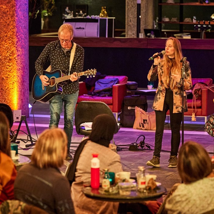 De Bridge werkt met bijzondere gastmuzikanten. Willem Philipsen (ex-Postmen) speelt samen met zanger Guus Bok en vertelt hoe hij na een herseninfarct nu weer met een arm gitaar kan spelen. Het Yanna Pelser Trio en het Rotterdamse koor Papaya onder leiding van Harm Jan Schenkel brengen elk enkele eigen nummers, maar begeleiden ook de muzikanten van De Bridge. Ze doen dat onder meer in Lean on me en het frêle Love is the Answer. Dj Elroy verzorgt de muziek in de pauze en na afloop.