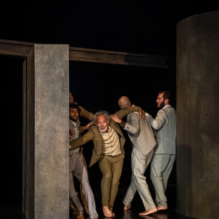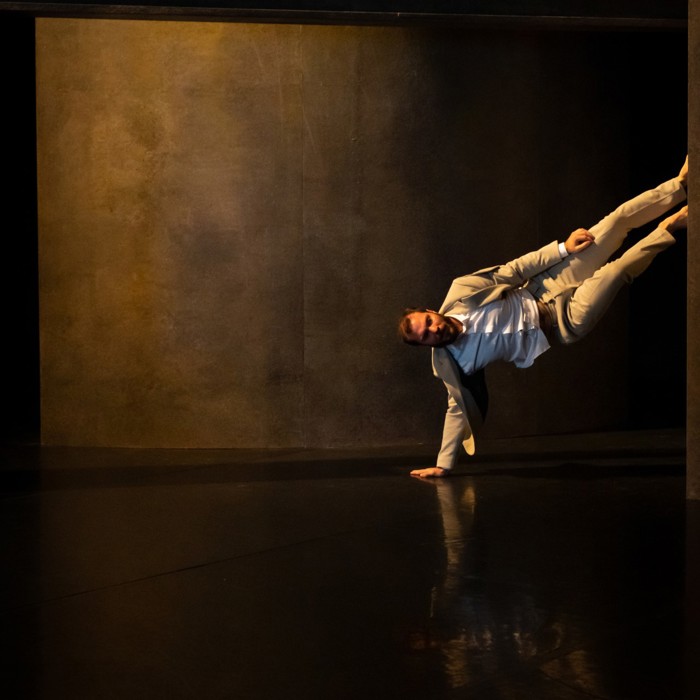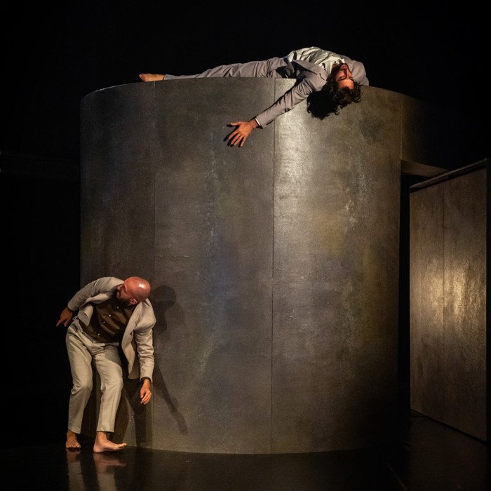 Vanishing Point speelt zich af in een gefragmenteerde, architectonisch vormgegeven ruimte met ronde en rechte muren, hoeken en doorgangen die spelen met extreme perspectieven en contrasten. Een niemandsland waar de performers verdwijnen en verschijnen, waar ze wankelen, spelen met de risico’s, het lot tarten. Waar hun lichamen – klimmend, hangend, balancerend – haperen én niet te temmen zijn.