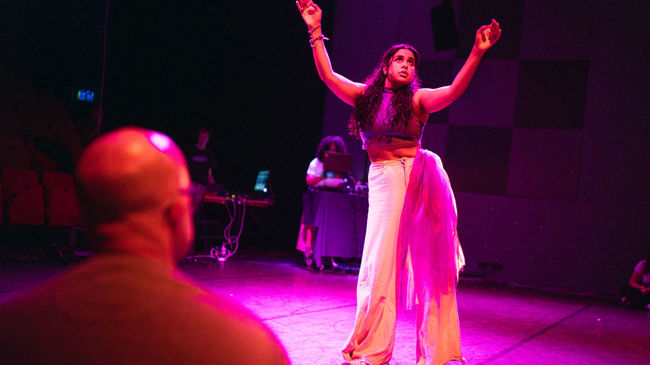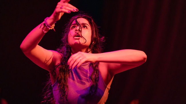 De Indiase Amisha Kumra is een movement artist die opgroeide in Noorwegen. Ze heeft een achtergrond in uiteenlopende dansstijlen als hiphop, house, modern, kathak, bollywood en bhangra. In peeling my purple onion werkt ze met een live muzikant en improvisatie afgestemd op hertz frequenties en beats. Ga mee op een reis waarbij de ademhalingstechniek pranayama de drijvende kracht vormt tussen live muziek en dans.