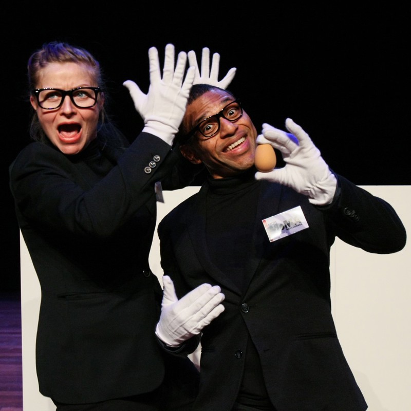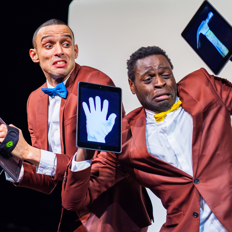 Twee goochelaars beginnen vrolijk met hun act. Ze vouwen hondjes van ballonnen en toveren bananen uit iPads. Precies zoals het hoort. Maar de truc komt in opstand. De iPad ontpopt zich tot een brutale grapjas die de show danig in de war stuurt. Uiteindelijk weet niemand meer wat voor of achter is en wie nu eigenlijk wie bestuurt.
