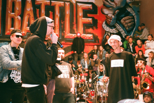 Graffiti is geen battle, maar een kunstvorm binnen de hiphop. Je ziet het vaak terug in de openbare ruimte. Denk aan stations, rolluiken, oude fabrieksgebouwen en vaak op (witte) muren. Of de graffitikunstenaar zoekt een onmogelijke plek op om te laten zien dat hij daar was. Snel aangebrachte 'handtekeningen' worden tags genoemd. Een graffiti-schildering, waarbij het werk bestaat uit een 'outline' en een 'fill-in', wordt een piece genoemd. Een throw-up is een grote uitgewerkte tag met een of twee kleuren en houdt daarmee het midden tussen een piece en een tag.