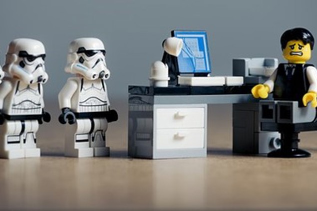 9. Er zijn drie LEGO-poppetjes die in een ruimtesonde rond de planeet Jupiter zweven.