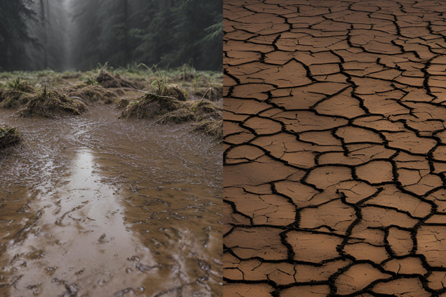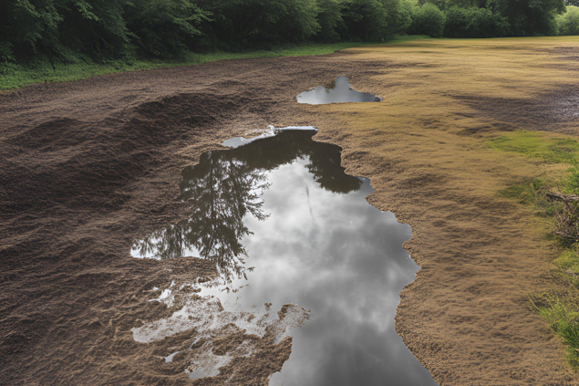 In de zomer, als het heel droog is, kan de grond barsten en uitdrogen door het gebrek aan vocht. Dit gebeurt vooral bij kleigronden, waar de scheuren zichtbaar worden door de krimpende bodem.
