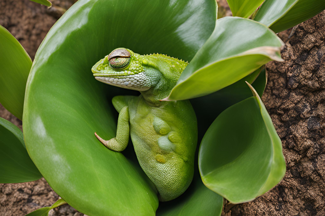De kameleon verandert van kleur om zich te verstoppen voor vijanden, door zich aan te passen aan de omgeving.