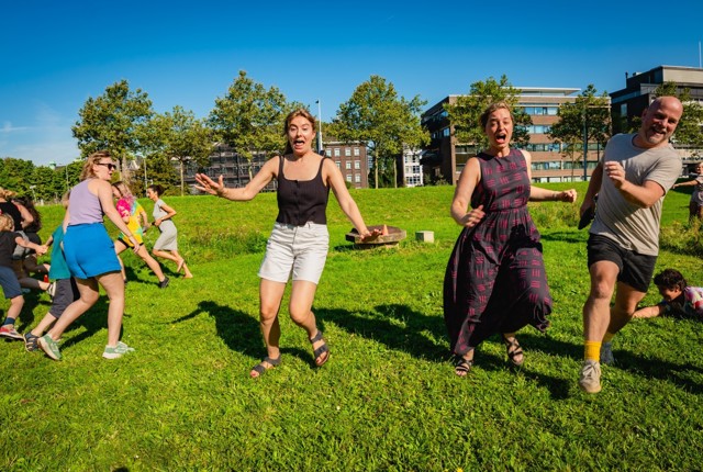 Eva: Dat potje tikkertje dus. Ook vond ik het heel leuk om te zien hoe de studenten zo in het spel opgingen. Zowel met het lezen van het script, als de workshop van URLAND. Ze vonden het spannend en waren onzeker over spelen bij de eerste repetitie en vervolgens zie ik ze helemaal opgaan in het spel.