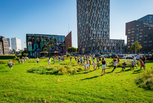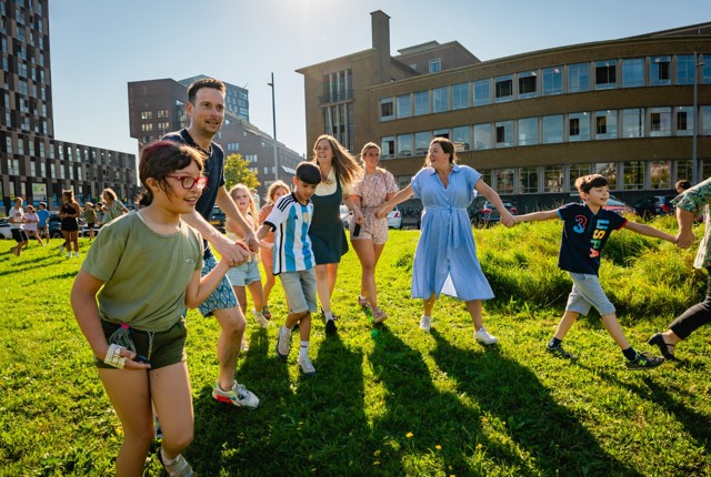 Eva: Ik vond het potje slingertikkertje die erop volgde heel bijzonder. Met dertig kinderen en dertig deelnemers verplaatsten we ons naar het grasveld. Twee tikkers probeerden de rest te pakken. Iedereen speelde zo enthousiast mee. Jong en oud verenigd in een lange slinger. Het was een warme dag; de volwassenen waren na één potje kapot. Maar de kinderen gingen vrolijk verder.