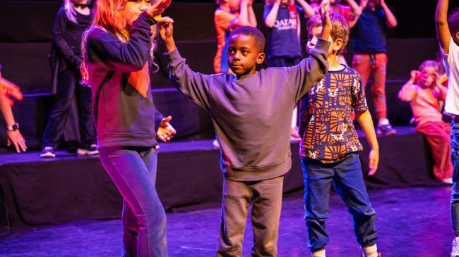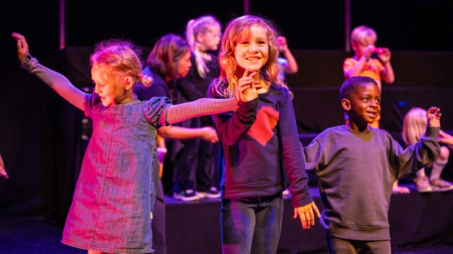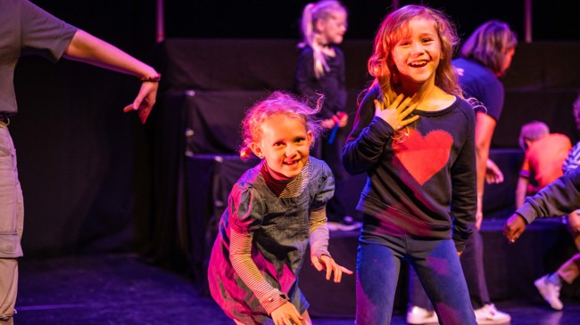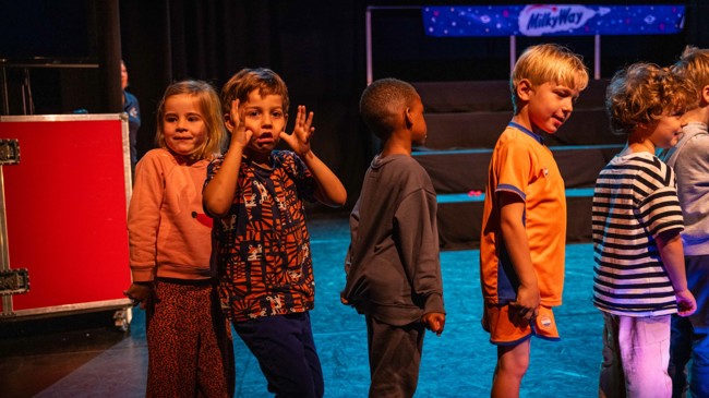 Theater- en danslessen geven op scholen doen we al lang, en sinds 2022 is daar een BSO bijgekomen: iedere dinsdagmiddag komen de kinderen van BSO De Grote Machinist bij Maas langs. De kinderen, allemaal tussen de vier en zeven jaar oud, maken bij ons kennis met theater in de breedste zin van het woord. Naast de lessen, zien ze wel eens een doorloop van een nieuwe voorstelling, nemen ze een kijkje bij techniek en wandelen ze door de kantoren op zoek naar inspiratie.