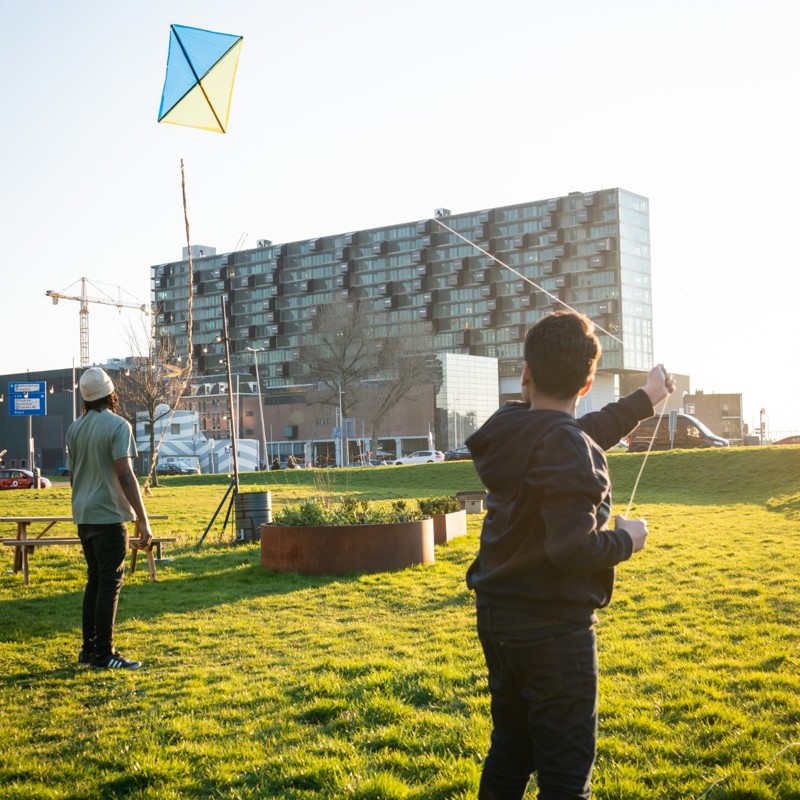 - Vliegers: De deelnemers schrijven teksten op zelf-gemaakte vliegers en laten die op in de voortuin van het Maaspodium.