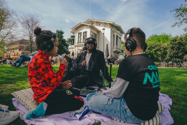 Na een workshop van de meiden van STATT. en een brainstorm gingen de Maas Creators het Park in om met elkaar en met de wijk in gesprek te gaan over interessante, zelf-verzonnen thema's. De mensen in het park konden LIVE meeluisteren via koptelefoons, en nu kun jij ook 1 van de podcasts terugluisteren!
