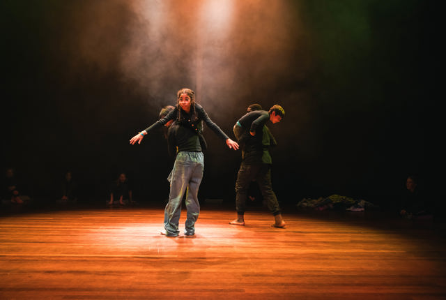 We gingen van 'IK' naar 'SAMEN' naar 'ER VOOR ELKAAR ZIJN'. Op dag 1 gingen we terug waar het allemaal begon: de baarmoeder. Met schrijven en yoga kwamen we dichter tot onszelf en onze eigen geschiedenis. Daarna kwamen we steeds meer in beweging, er ontstond een gezamenlijke energie die we met elkaar deelden. We tilden en sleepten elkaar door de zaal, we verstopten ons en kwamen weer tevoorschijn om dichter tot de ander te komen. Op de laatste dag kwam alles bij elkaar en lieten we het publiek zien hoe jij invloed hebt op de ander en hoe het is om er voor elkaar te zijn; om elkaars jas te zijn.