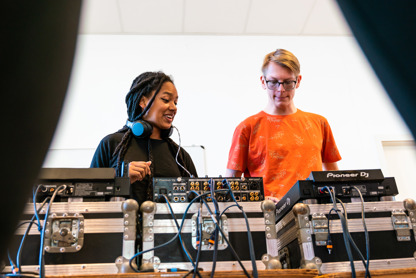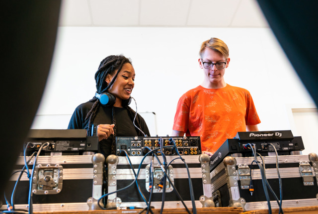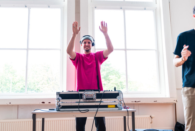 De workshop gaat van start. Met een voorzichtige beat, staat de dj de studenten op te wachten. Iedereen verzamelt zich rond de dj-set. Sommige bekend met alle knoppen, voor anderen is dit nog volledig onbekend. Ze krijgen uitleg en mogen zelf proberen te draaien.