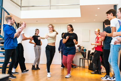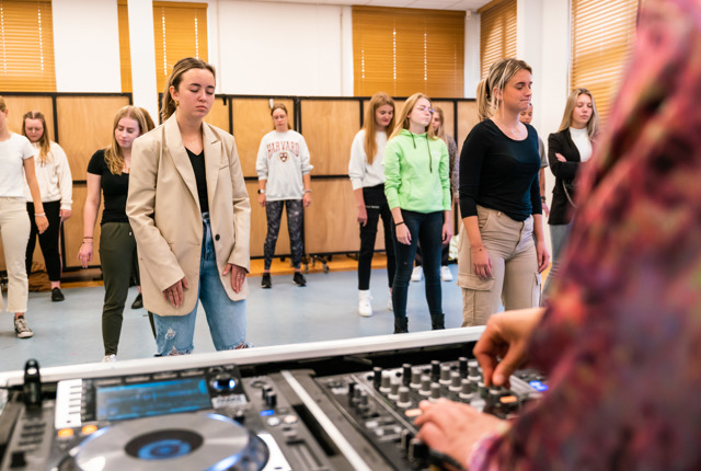 Na deze kennismaking gaan de studenten met een dansdocent de vloer op. Met gesloten ogen tikken ze met hun vingers mee op de beat, voorzichtig gaat ook het hoofd mee bewegen en de armen. Niemand die het ziet, toch? Dit is controle verliezen in de anonimiteit, maar hoe eng is het om je onder toeziend oog van medestudenten bloot te geven?